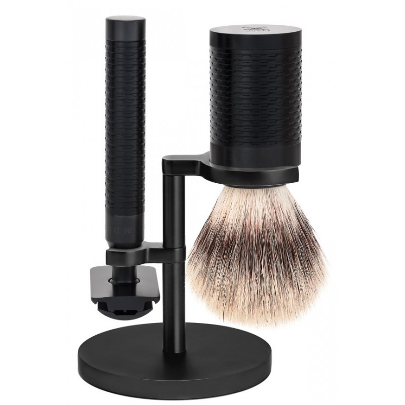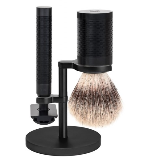 3-teiliges Rasierset, Griffe Edelstahl / schwarz, DLC